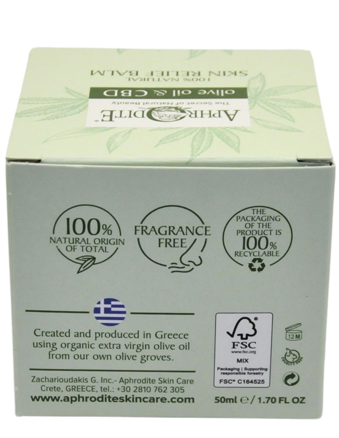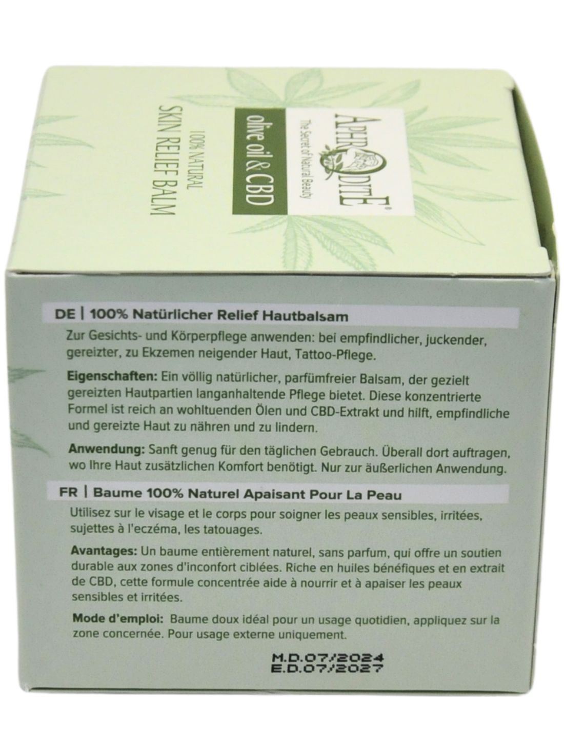 Бальзам для догляду "Спокійна шкіра" Aphrodite® з олією Коноплі 150мг CBD, натуральний, 50 мл.
